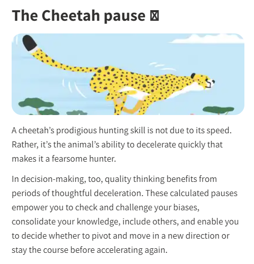 의사 결정, 'Cheetah Pause'(치타 멈춤)를 하라!
