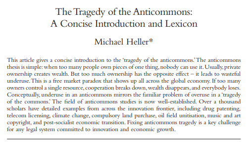 THE TRAGEDY OF THE ANTICOMMONS
