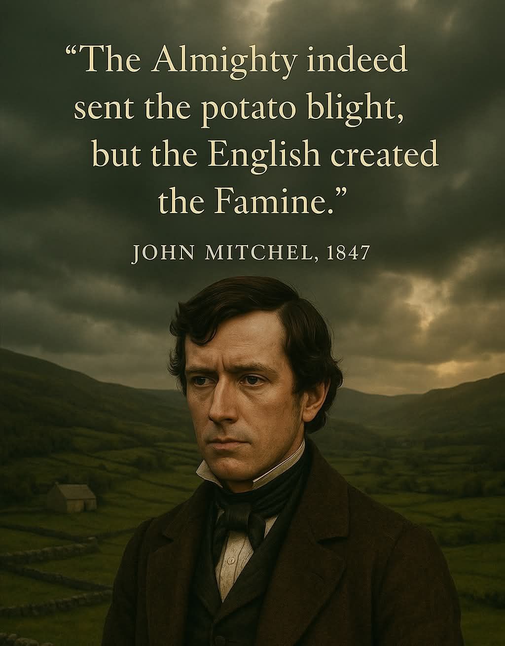 존 미첼(John Mitchel, 1815-1875)의 이 유명한 말은 1861년 그의 저서 『아일랜드의 마지막 정복 (아마도)』(The Last Conquest of Ireland (Perhaps))에서 나온 것으로, 아일랜드 대기근에 대한 가장 영향력 있는 비판 중 하나가 되었다.