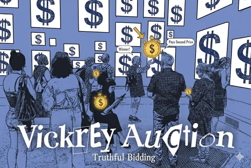 빅커리 경매(Vickrey Auction)는 1996년 노벨 경제학상을 수상한 저명한 경제학자 **윌리엄 빅커리(William Vickrey)**가 제안한 경매 방식이다.1 이 방식은 제2가격 봉인 입찰 경매(Second-Price Sealed Bid Auction, SPSB)로도 알려져 있으며, 입찰자의 전략적 행동을 근본적으로 변화시키는 혁신적인 지불 구조를 특징으로 한다.