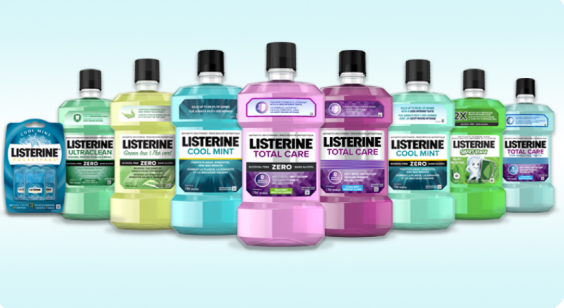- 새로운 형태: 리스테린 레디! 탭스(Ready! Tabs, 2018년)는 고체 정제를 씹고, 헹구고, 삼키는 액체로 변환시켜 화장실 세면대에 대한 의존을 깨고 '이동 중'이라는 새로운 카테고리를 창출했다.30