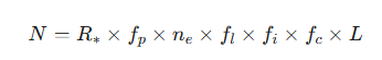 | $R_*$ | 은하 내 항성 생성율 | 연간 약 10개 | 연간 약 1.5~3개 | 항성 생성 속도는 생각보다 느리지만, 기존 별의 수가 막대함. 22 |